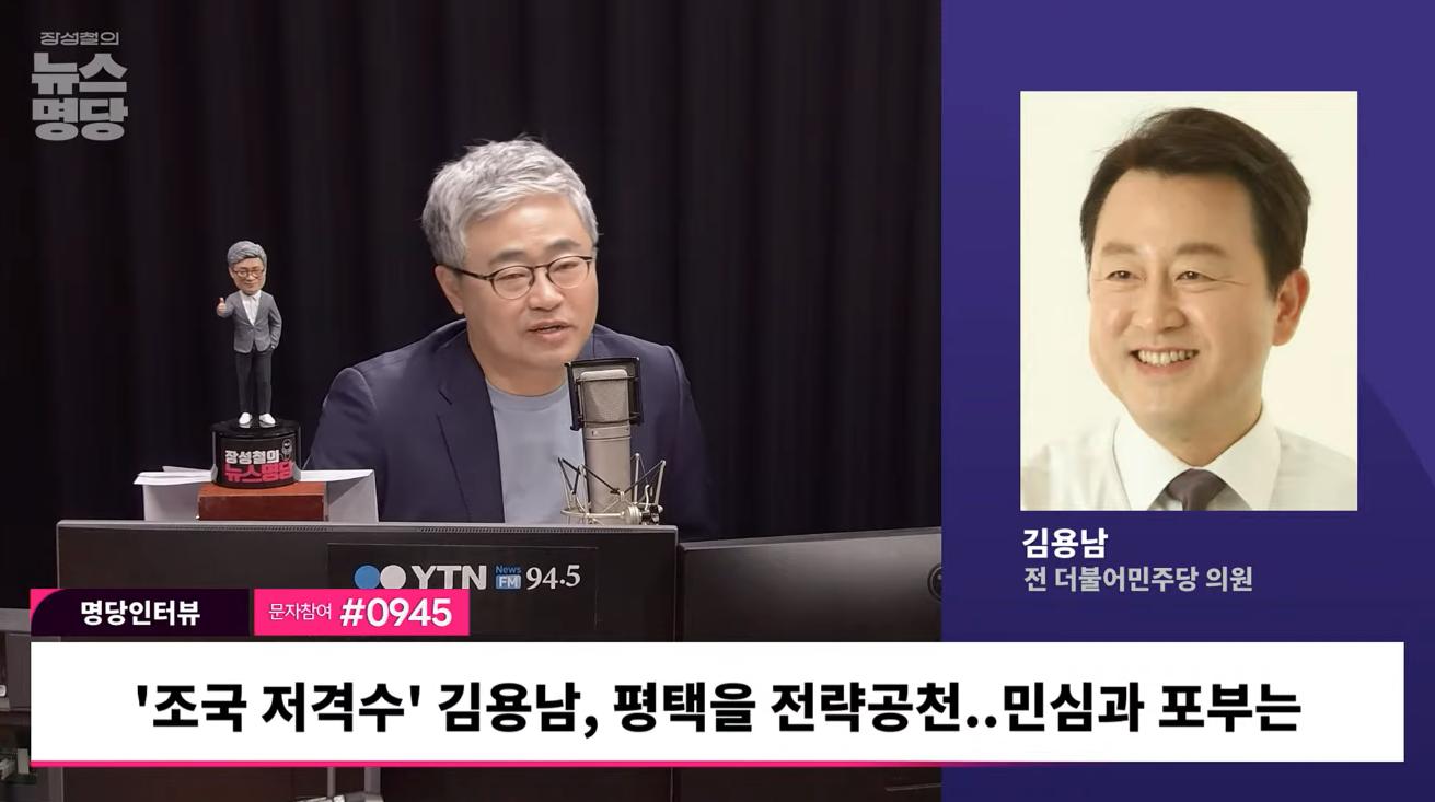 ◆ 장성철 : 그때 그러셨죠? 계속해서 신장식 의원이 최근 YTN 인터뷰에서요, "2019년 서초동에서 촛불 들었던 평택 시민들도 꽤 많을 것이다. 평택에서도 우리 조국 대표 지키기 위해서 많은 노력을 했다" 이러면서 의원님 '조국 저격수' 딱 얘기하니까 그냥 김용남 의원님을 저격해 버렸어요. 어떻게 생각하세요?
