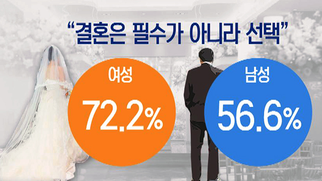 여성 10명 중 7명은 "결혼은 필수가 아니고 선택이다"라고 생각하는 것으로 나타났습니다.