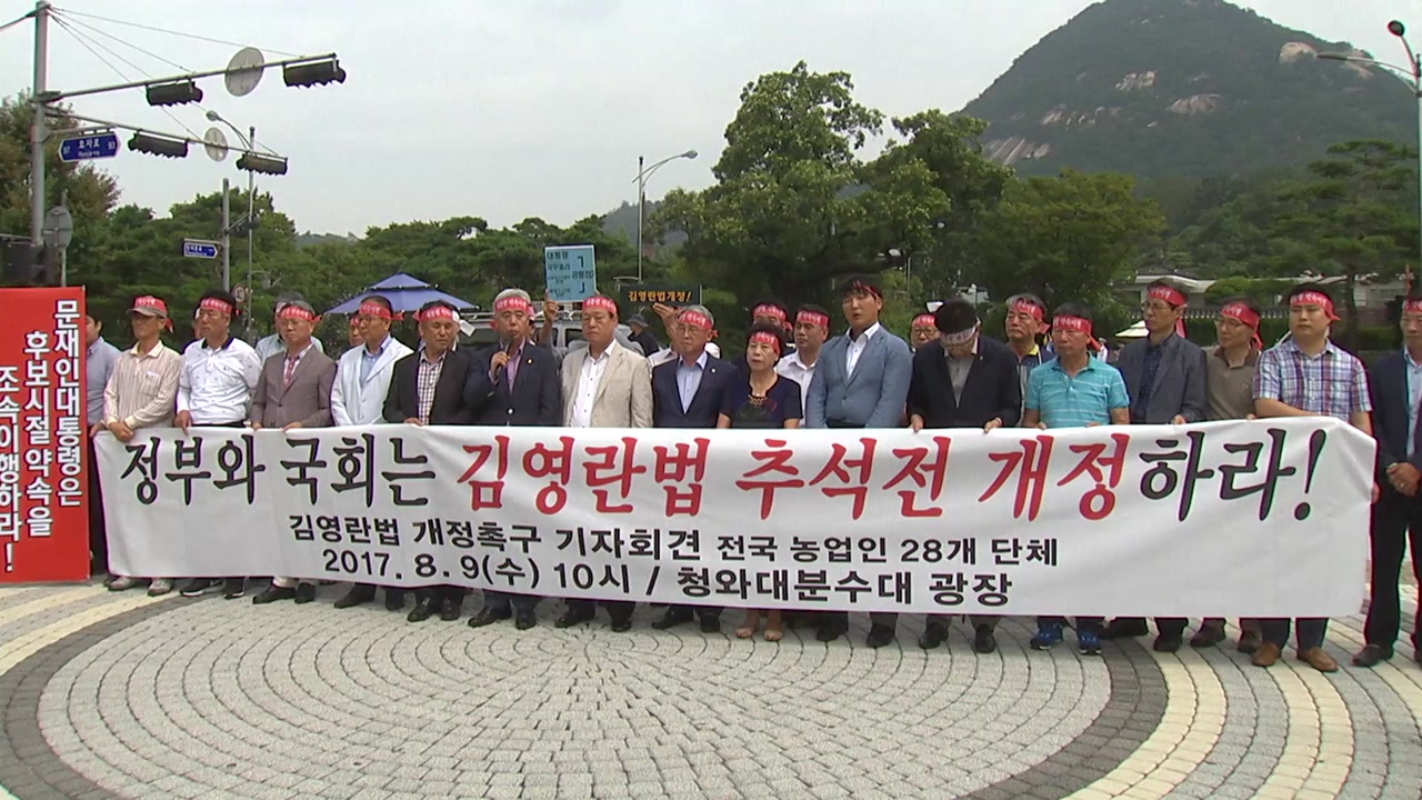 한우협회 등은 오늘 청와대 앞에서 기자회견을 열고, 문재인 대통령이 후보 시절 공약했던 대로 청탁금지법에 국내산 농축산물의 예외 조항을 마련해야 한다고 주장했습니다.