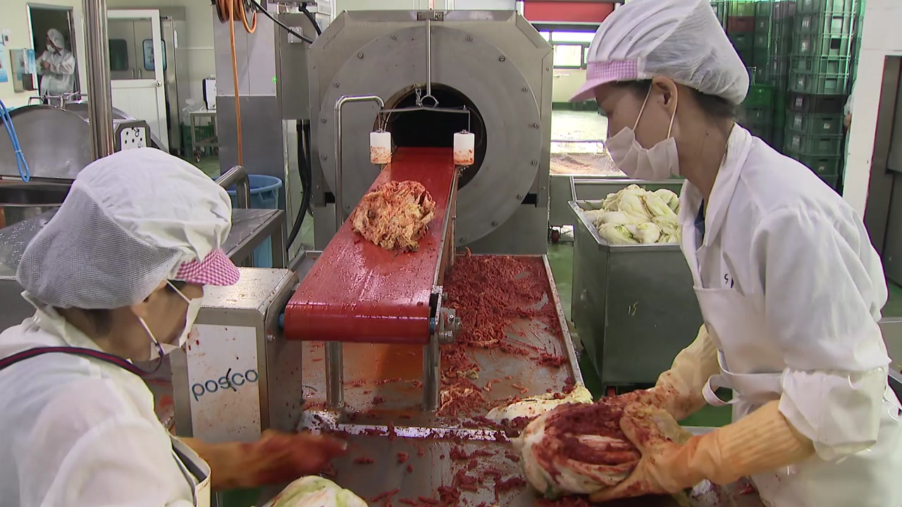[김치은 / 인천김치절임류가공사업협동조합 이사장 : 배추 소 넣기 과정이 전체 공정의 80%인데 상당히 시간이 많이 걸립니다. 기계를 도입하고 나서는 2명이 10명 몫을 하고 생산량도 7∼8배 이상 증가했습니다.]