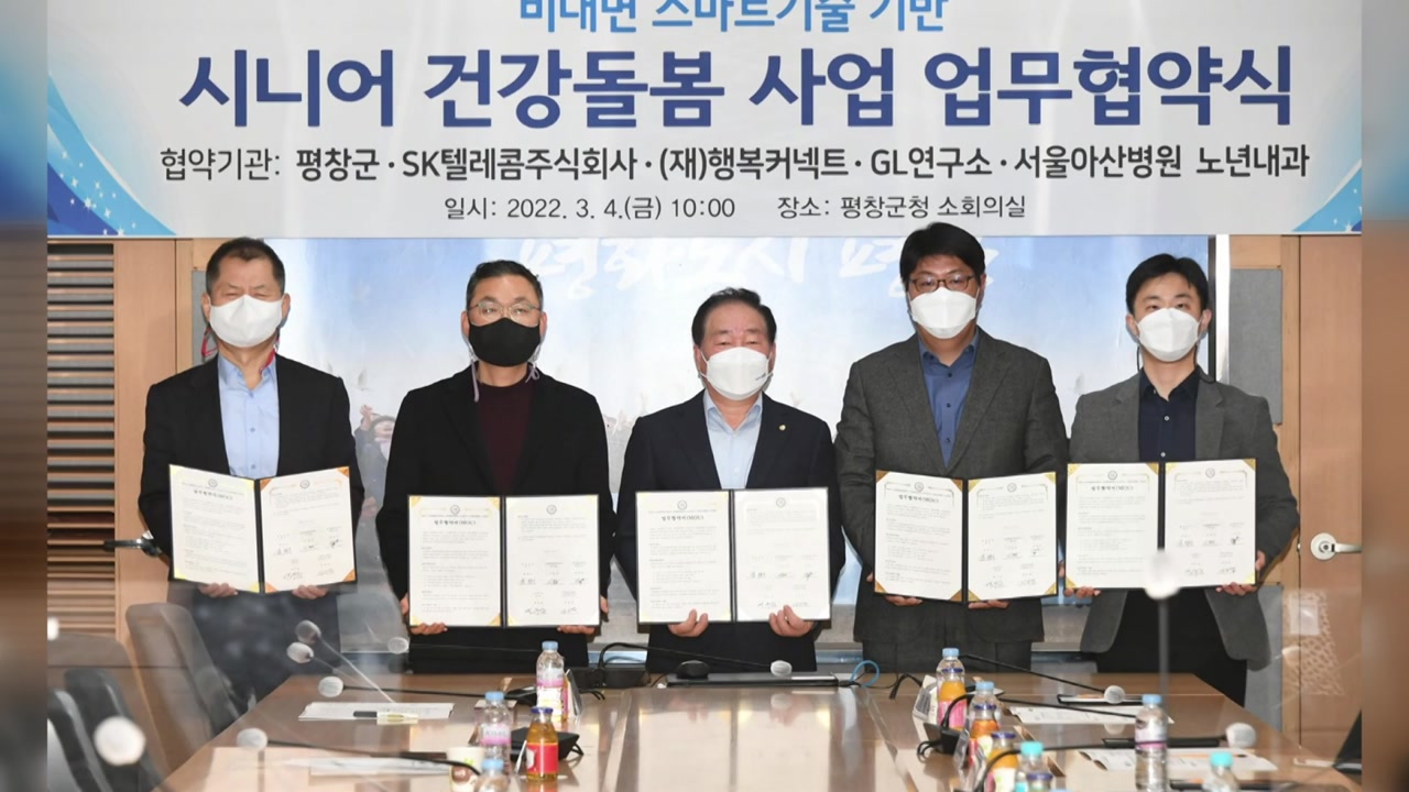SK텔레콤은 평창군·서울아산병원과 함께 고령층에 인공지능 돌봄서비스를 제공하는 업무협약을 맺었습니다.