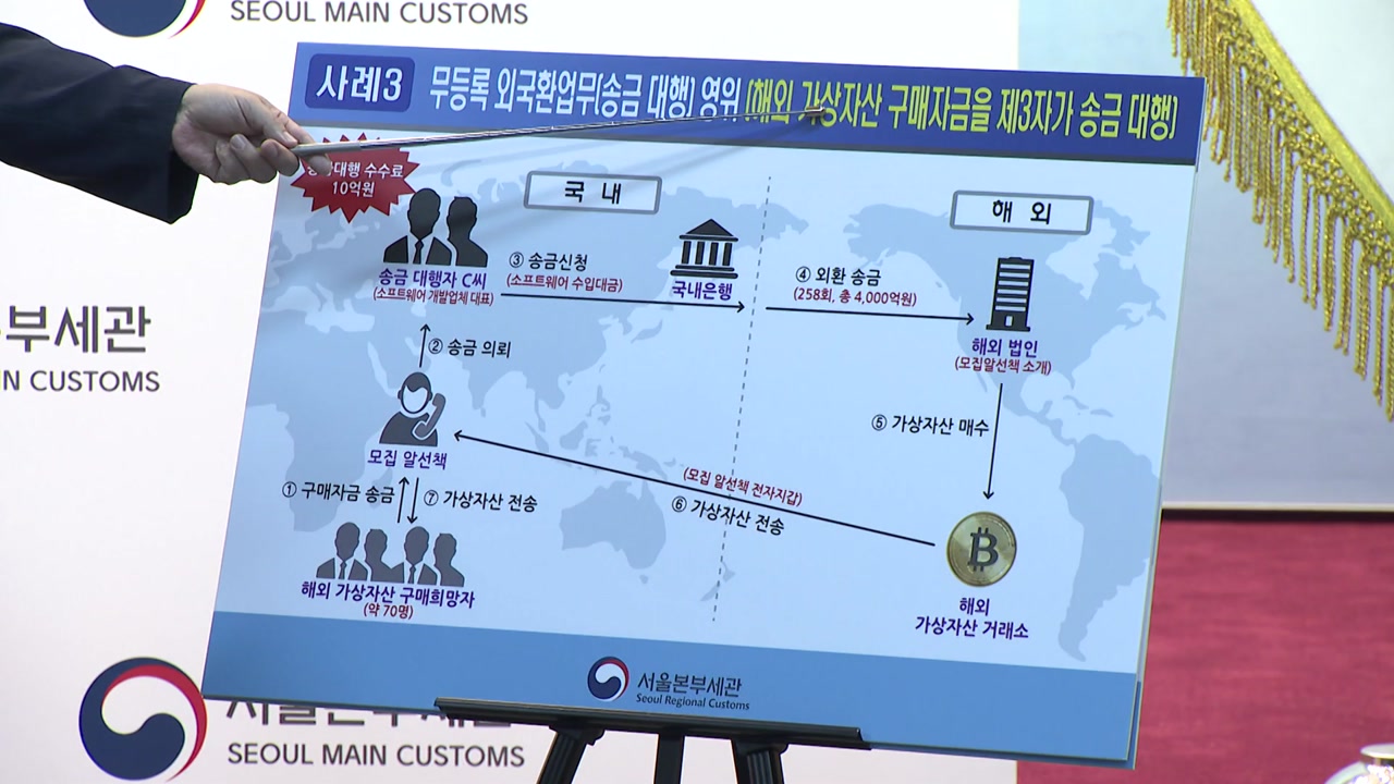그 돈으로 해외에서 가상자산을 산 뒤 국내에서 팔고 시세차익을 챙기는 식으로 1조 3,040억 원 규모의 불법 외환 거래를 벌였습니다.