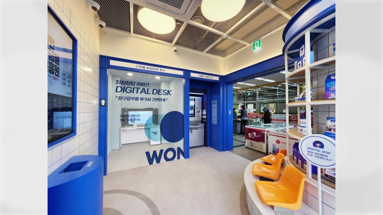 경기도 양주 지점에서 시범적으로 운영되며 평일에는 디지털 데스크에서 은행 직원과 화상 연결을 통해 은행 업무를 볼 수 있습니다.