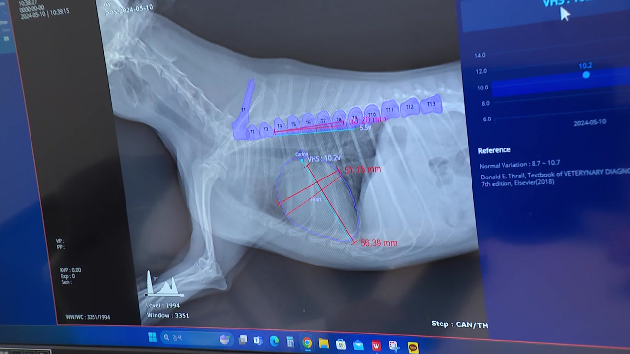 [오이세 / 수의사 : 예전에는 수의사가 일일이 그걸 손으로 수치를 측정을 해서 그 심장의 크기를 평가했다면 지금은 이 인공지능을 통해서 15초 만에 결괏값을 확인할 수가 있기 때문에, 예전의 방사선 사진은 주관식 문제였다면 AI가 도입되면서 객관식 문제로 바뀌었다….]