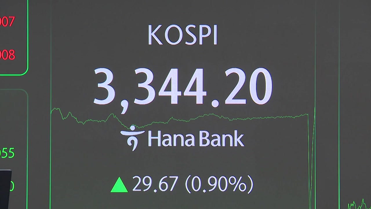코스피는 0.6% 오른 3,330.6으로 출발해 장 초반 사상 최고치인 3,344.7까지 오른 뒤 0.9% 오른 3,344.2로 마감을 했습니다.