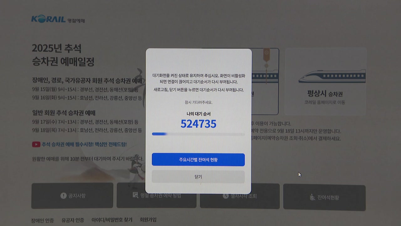 코레일은 평소 명절보다 두 배가량 늘어난 긴 연휴로 일시적인 접속 장애가 발생했다고 설명하면서 단계적으로 시스템을 정상화하는 중이라고 강조했습니다.