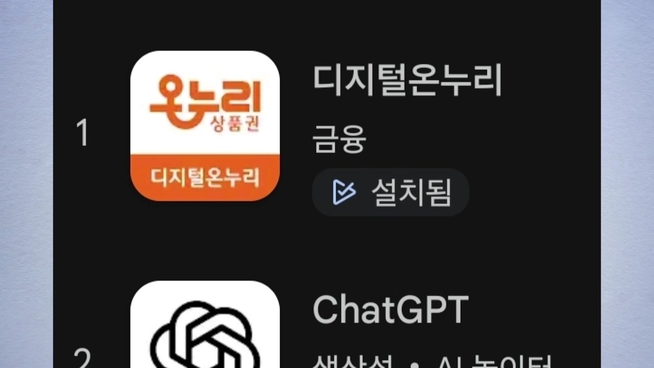 정부가 소비 진작을 위해 시행하는 상생페이백 사업 영향으로 디지털 온누리상품권 앱 '디지털 온누리'가 앱스토어 다운로드 순위 1위에 올랐습니다.