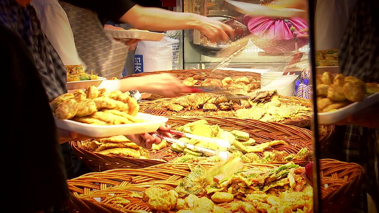 줄을 선 사람들은 보기만 해도 군침이 도는 전을 하나, 둘 바쁘게 옮겨 담습니다.