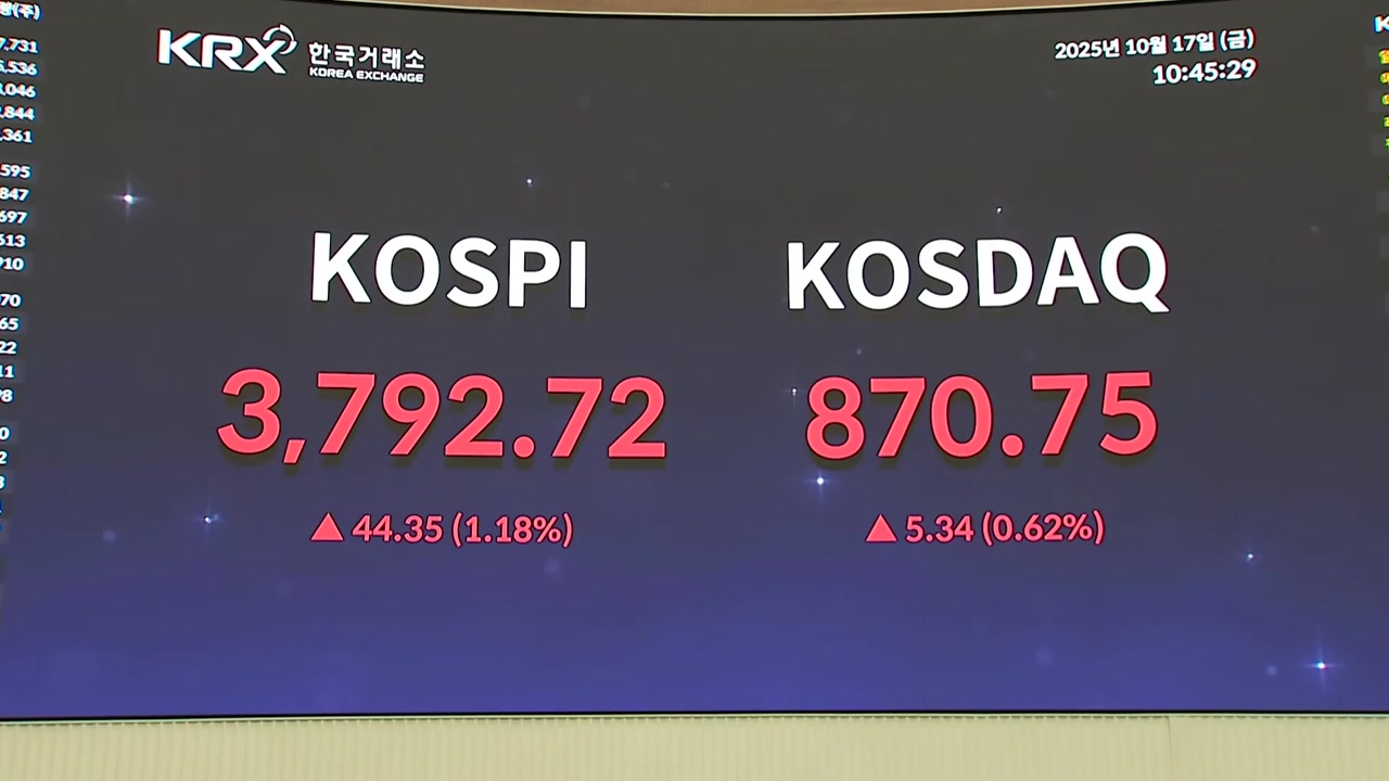 다만, 기관과 개인의 차익 실현 물량이 쏟아지면서 지수는 현재 3,750선을 중심으로 오르내리고 있습니다.