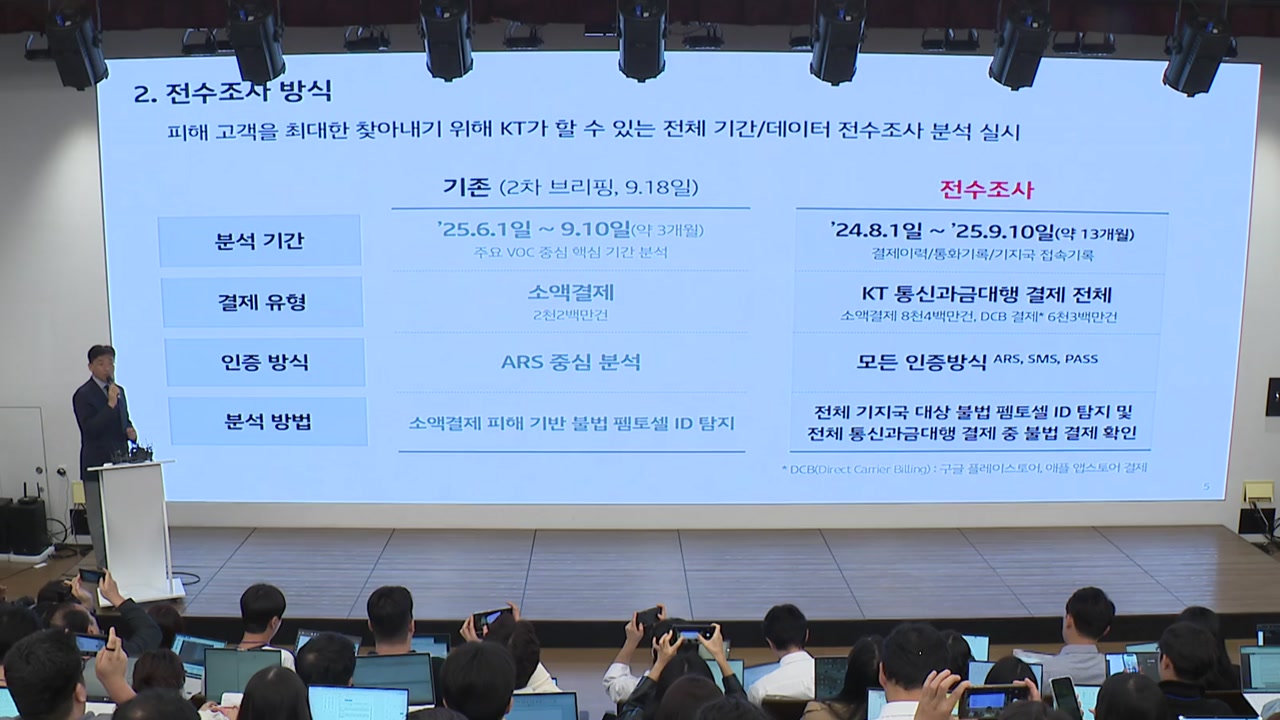 [서 창 석 / KT 네트워크 부문 부사장 : 개인 정보 유출 정황은 저희가 최초 발생 시기가 (조사 기간이) 3개월일 때는 올해 6월 26일이었는데. (이번에) 저희가 24년 10월로 확인됐습니다.]