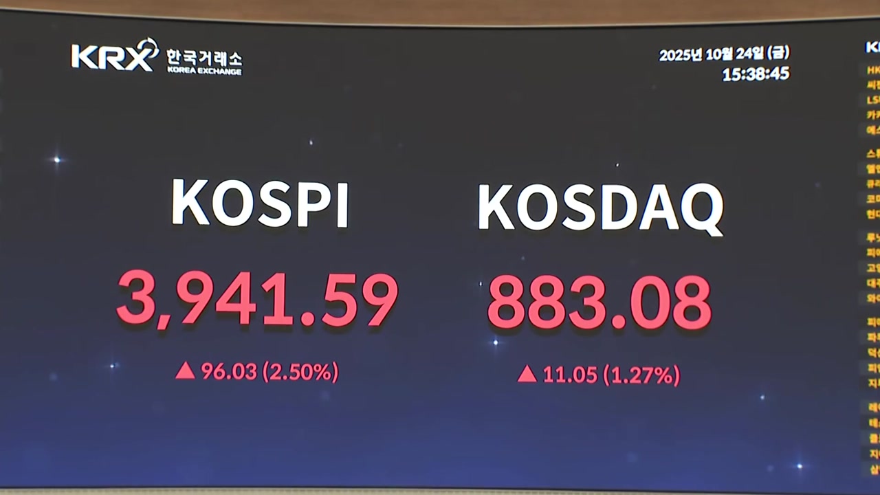 코스피는 기관과 외국인의 순매수로 장중에 3,951까지 올라 사상 최고치를 기록한 후 2.5% 오른 3,941로 마감했습니다.
