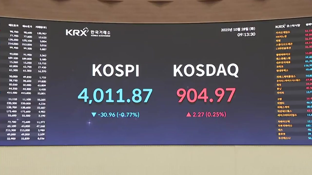 어제 코스피가 사상 최초로 4,000선을 넘어선 이후, 숨 고르기를 하고 있습니다. 이번 주 APEC 행사와 삼성전자, 하이닉스 등 실적 발표도 예정되며 향후 우리 증시 흐름에 관심이 모아지고 있는데요. 경제 관련 내용,정철진 경제 평론가와 함께 이야기 나눠보겠습니다. 안녕하십니까? 코스피가 어제 사상 처음 4000을 돌파하더니 숨가르기를 하고 있는 모습입니다. 어떻게 보고 있으세요?