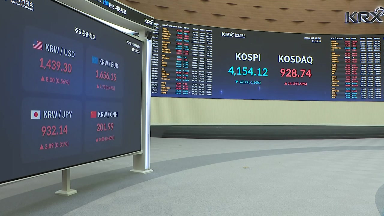 외국인·기관 투자자가 2조 원 넘는 주식을 팔아치우면서 4,140선마저 무너졌습니다.