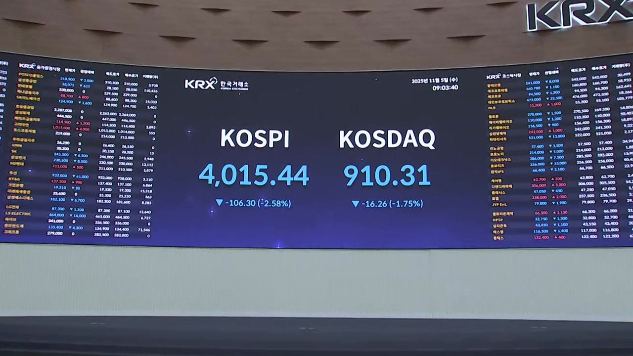 올해 파죽지세로 상승한 만큼 차익실현 욕구도 크게 나타나는 것으로 보이는데 오늘 새벽에 뉴욕증시가 AI 버블에 대한 우려로 급락한 여파가 지금 우리 증시에도 나타나는 것으로 보고 있습니다.