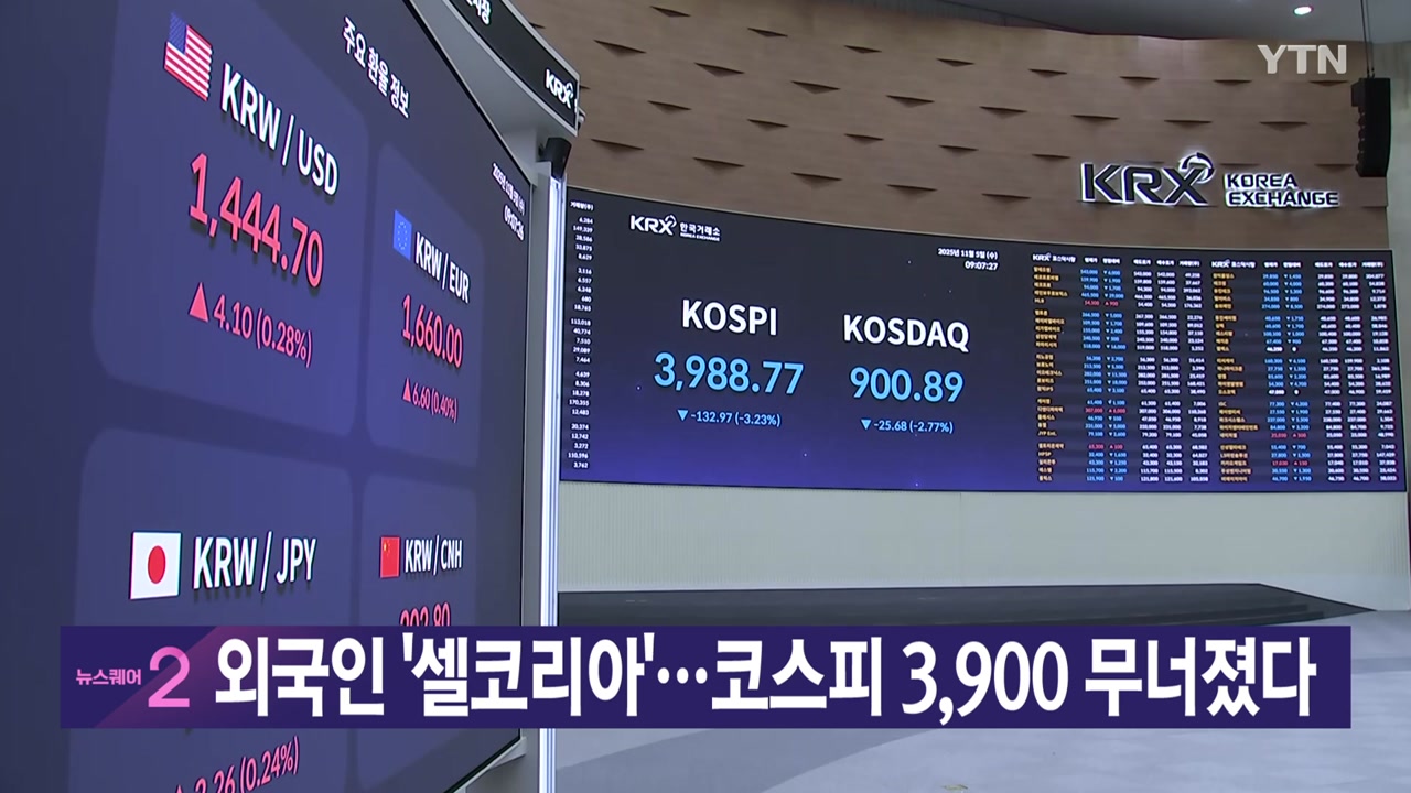 ■ 코스피가 6% 급락하며 장중 3,900선이 무너지면서 매도 사이드카가 발동됐습니다. AI 버블 붕괴 우려에 외국인들이 1조 4천억 원어치를 팔아치웠습니다.