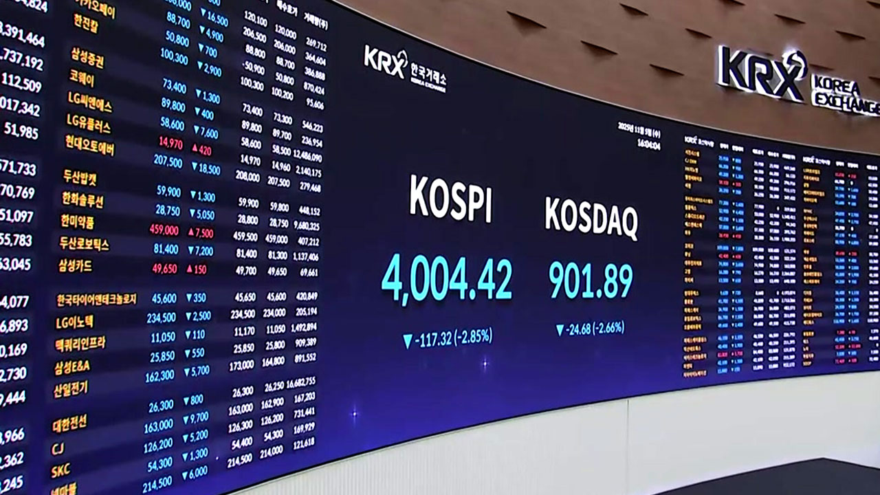 코스피는 전장보다 117.32포인트, 2.85% 하락한 4,004.42에 거래를 마치며 이틀 연속 내림세를 보였습니다.