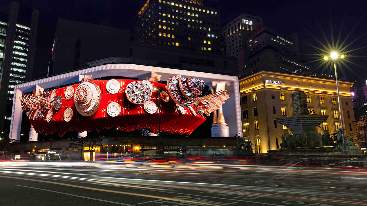 신세계백화점이 본점 외관의 초대형 전광판을 통해 크리스마스 영상을 공개했습니다.
