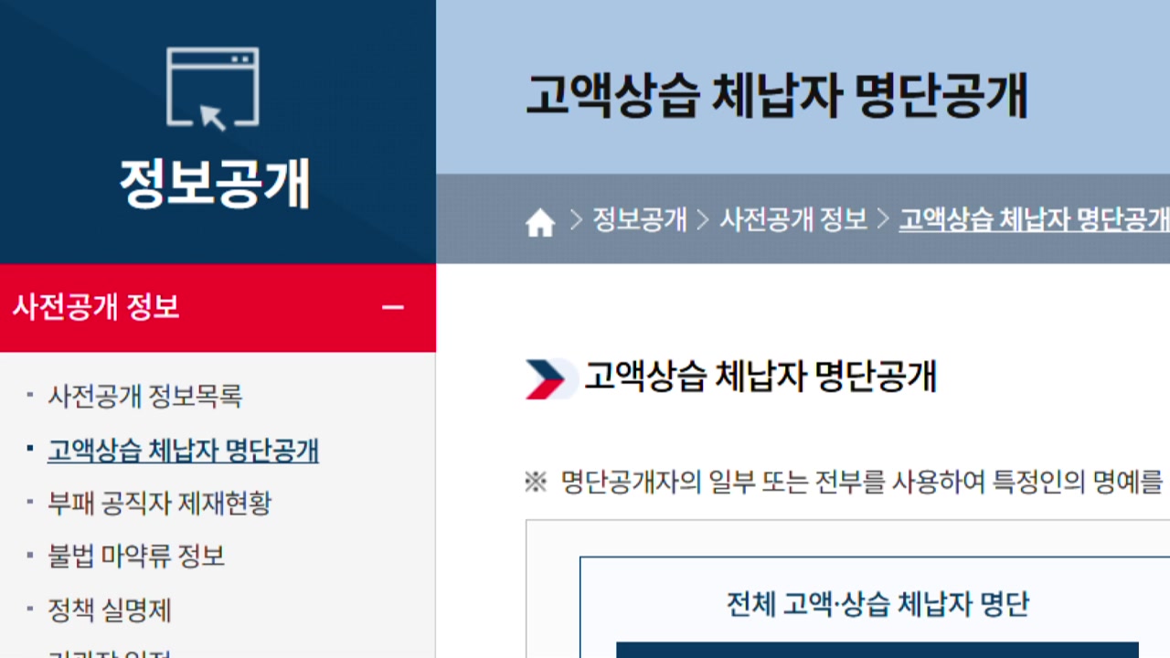 올해 공개 대상 체납자의 총 체납액은 1조3천362억 원으로 지난해보다 체납액은 691억 원, 공개 대상 인원은 12명 늘었습니다.