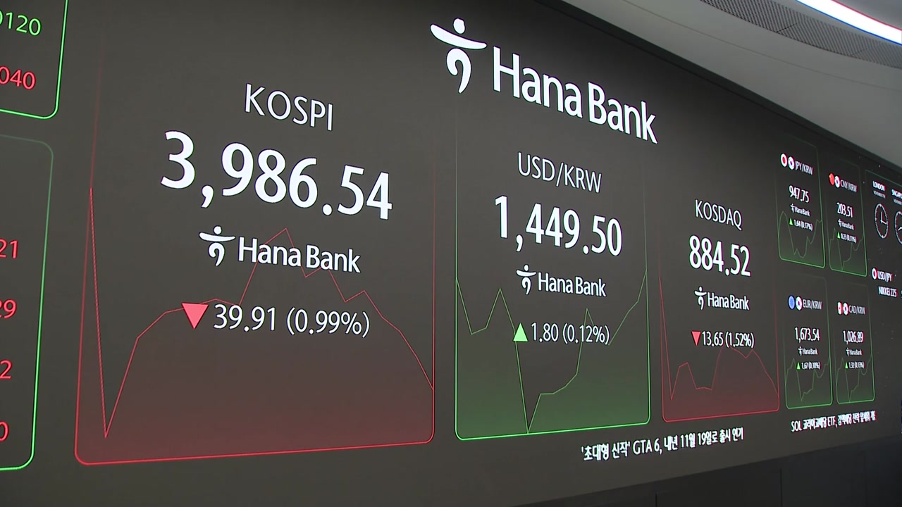 코스피는 오늘 1.6% 내린 4000선 아래에서 출발해 한때 4,000선을 회복하는 듯했지만 하락폭이 3% 넘게 커지며 3900선 아래로 밀렸습니다.