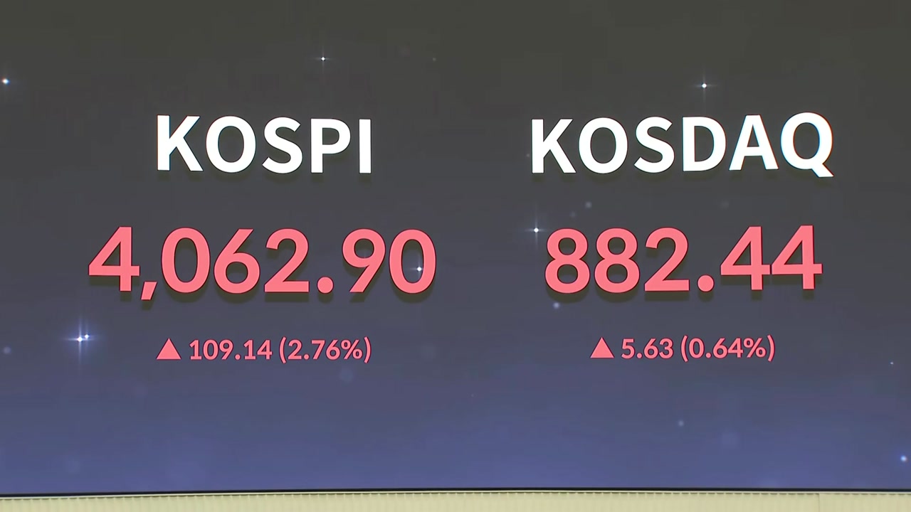 4000선을 넘은 코스피는 계속 상승폭을 키우며 오후 2시 20분쯤 3.5% 오른 4092까지 상승했습니다.