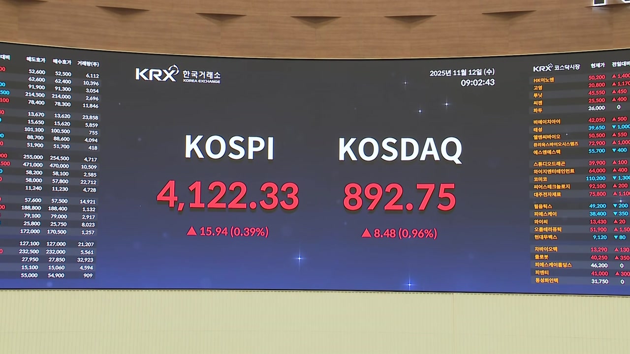 코스피는 0.22% 내린 4097.44포인트로 개장했고 현재는 소폭 올라가서 4112포인트를 기록하고 있습니다.