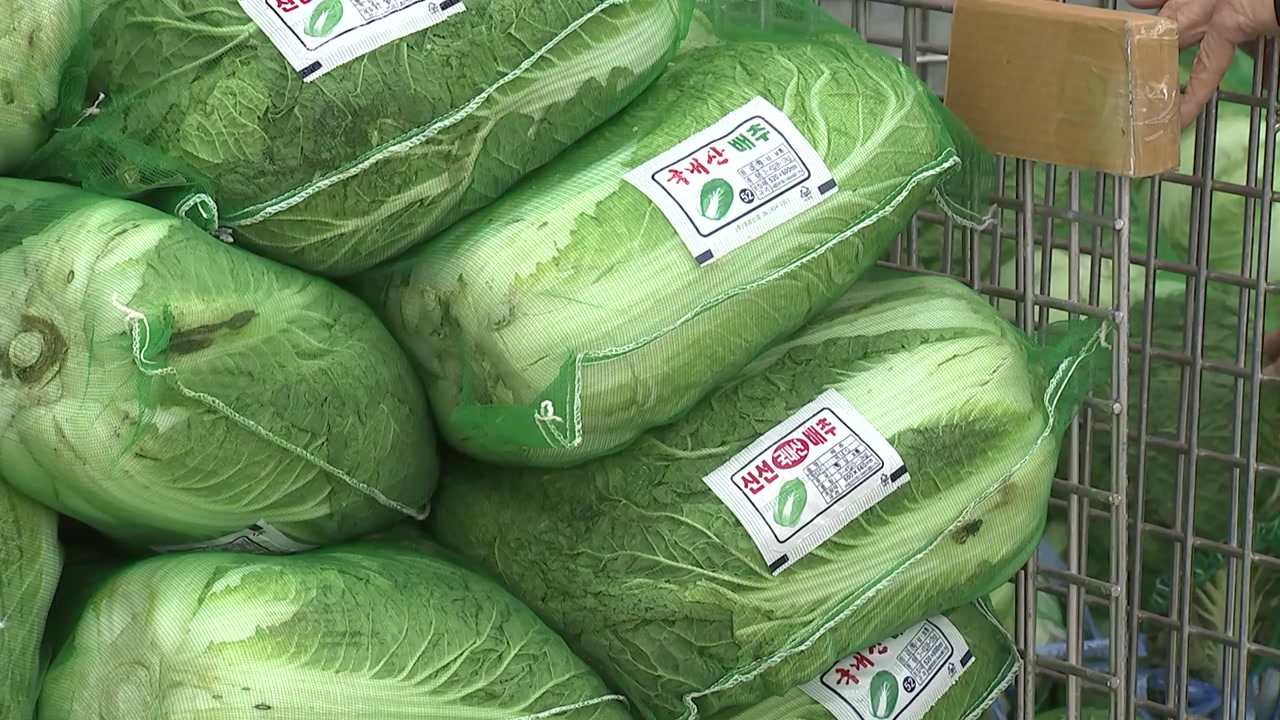 실제로 배추 1포기 소매가격은 약 3천 원으로 지난달보다 50%, 평년과 비교해도 5% 넘게 떨어졌습니다.