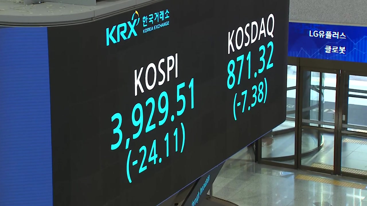 코스피는 전날보다 0.6% 내린 3,929로 거래를 마쳤습니다.