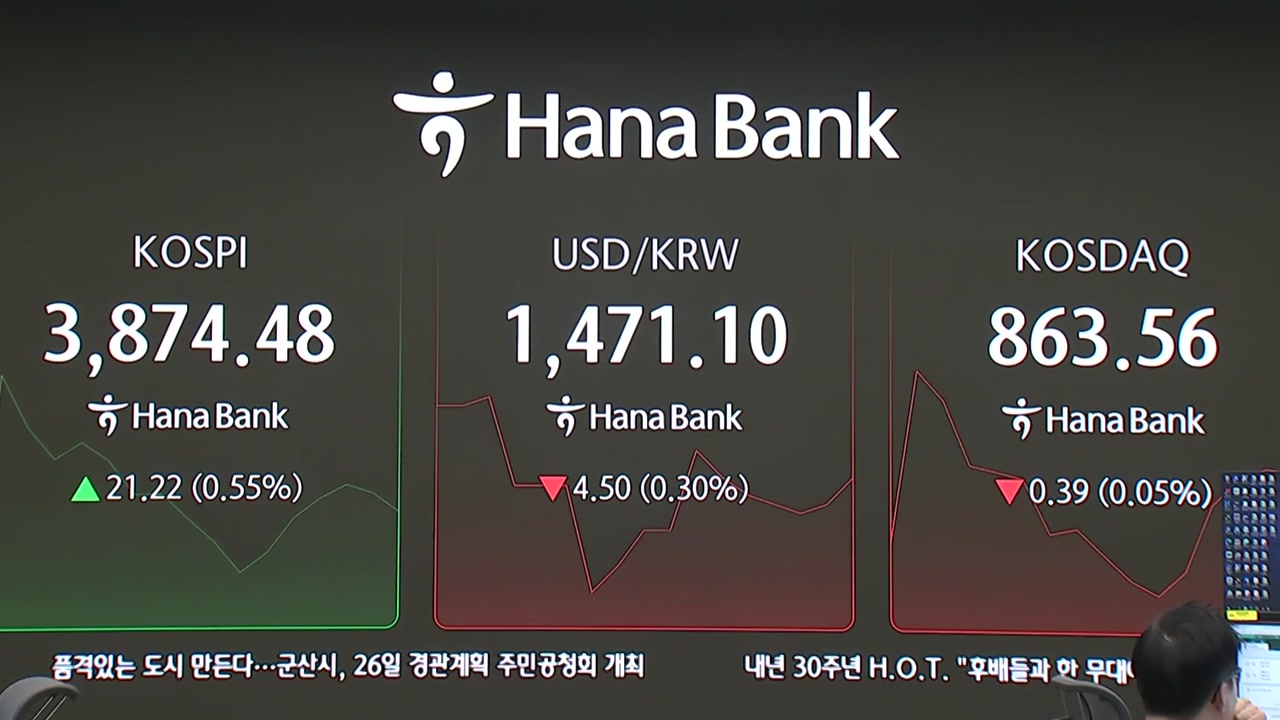 그러나 상승폭이 줄면서 3,900선 아래로 내려갔다가 3,900선에 올라왔습니다.