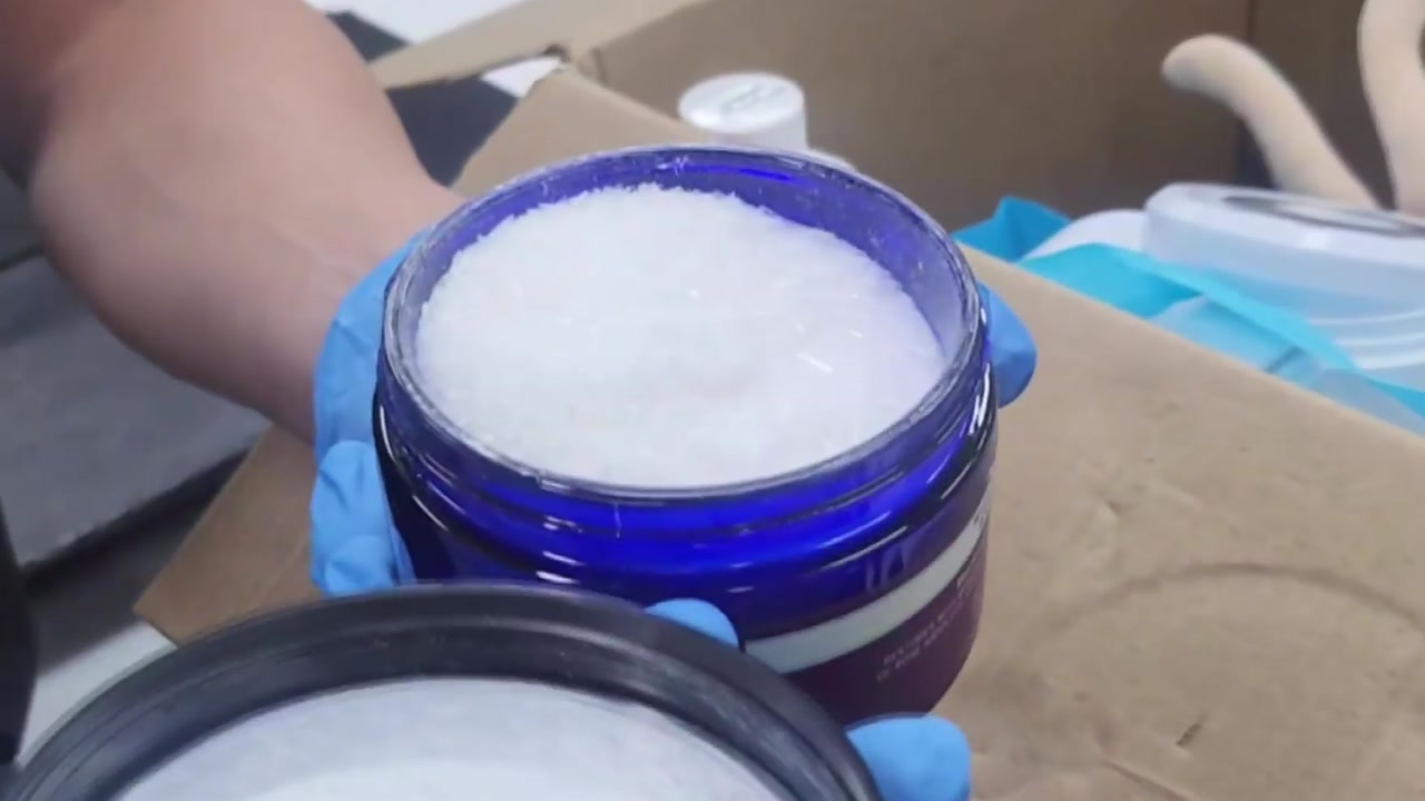 이번엔 캄보디아에서 들어온 재봉실을 자르니 심지에 수상한 비닐이 나타납니다.