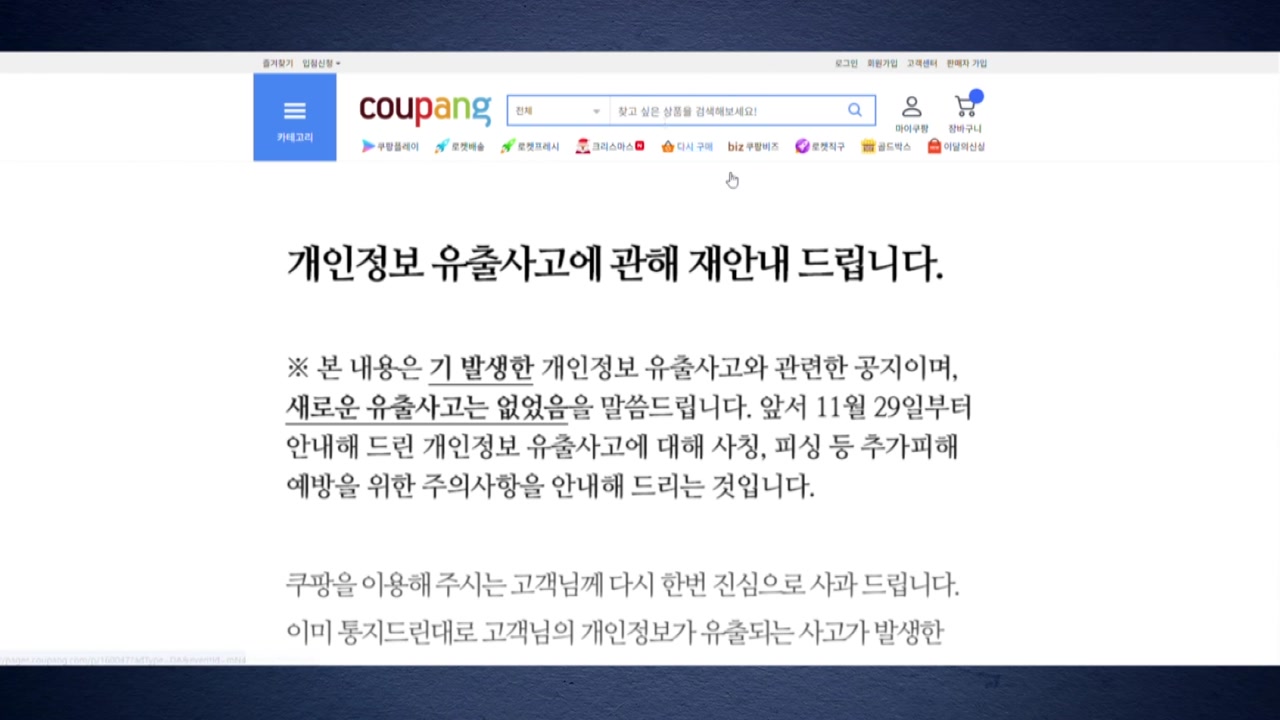[김대종/ 세종대 경영학과 교수 : 쿠팡 사건이 보안의 직접 비용이 커진다는 걸 제대로 보여주고 있습니다. 경영자 입장에서 보안 투자 몇십억 아끼려다 수천억 리스크를 떠안는 구조라는 게 명확해진 사건입니다.]