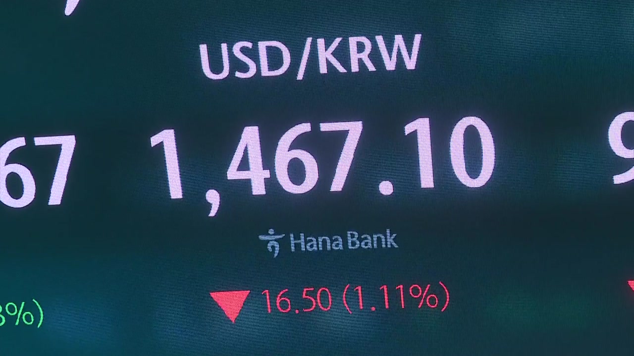 사흘 연속 1,480원대를 유지하며 어제와 오늘 1,484원까지 올랐던 것과 비교하면 35원 가까이 내렸습니다.