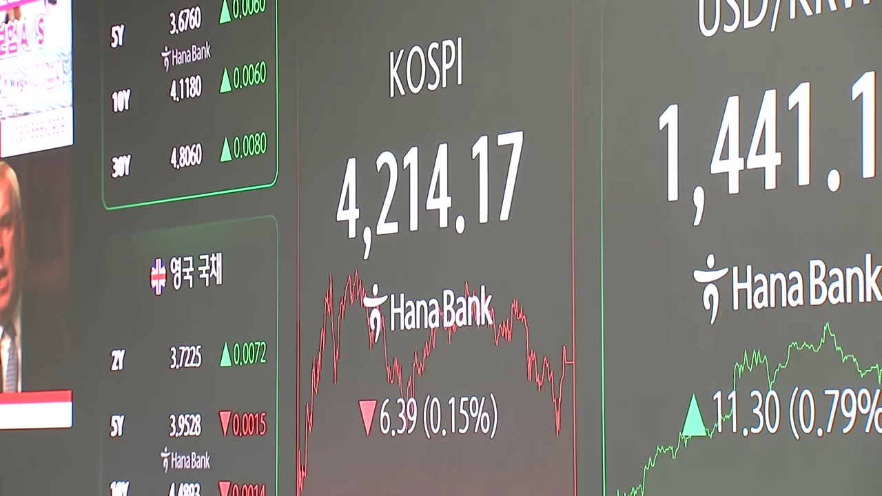 코스피는 오늘 0.6% 내린 4,190선에서 출발해 상승과 하락을 반복하는 혼조세를 보이다 0.2% 내린 4,214로 마감했습니다.