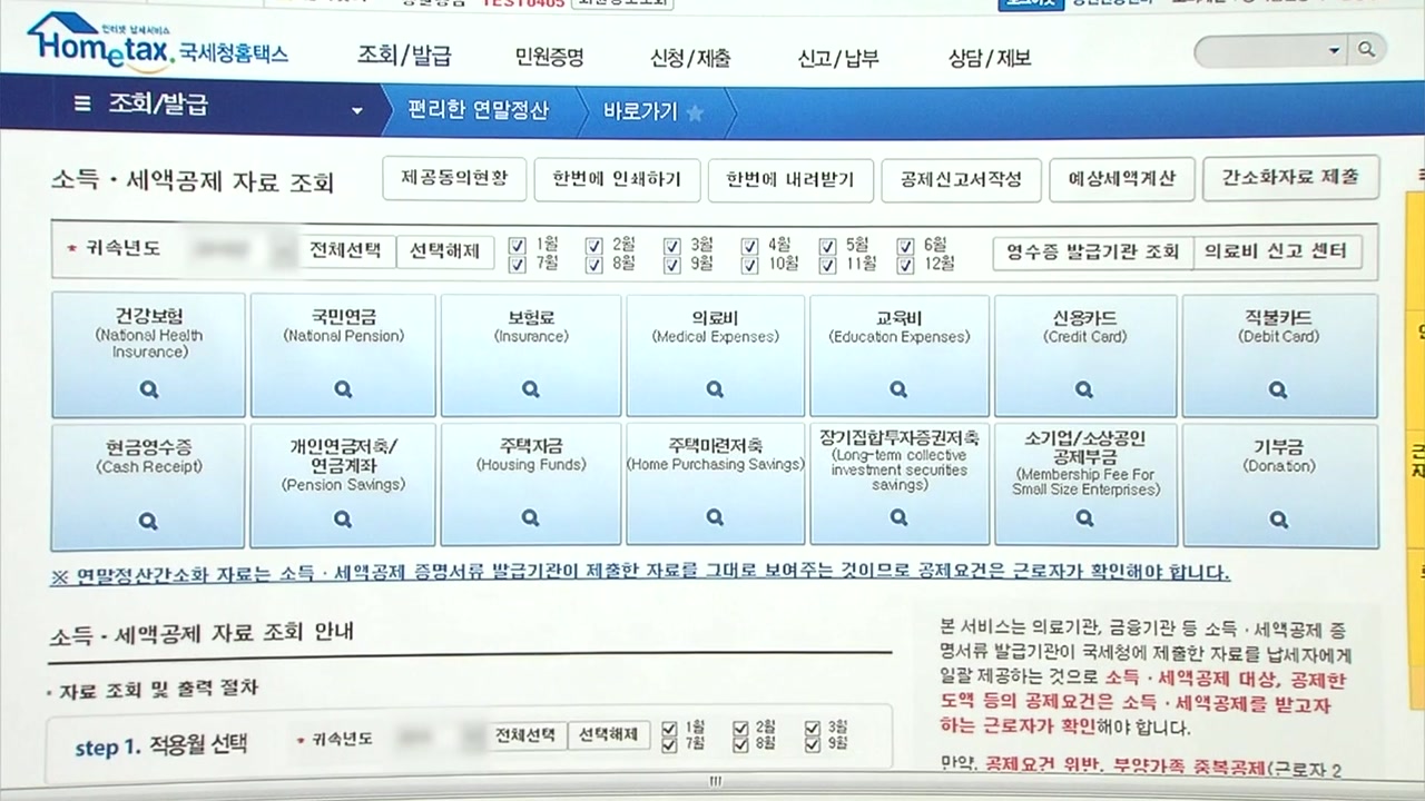 국세청은 신용카드 사용금액 등 각종 공제자료를 올해는 3종 추가해 모두 45종 제공합니다.