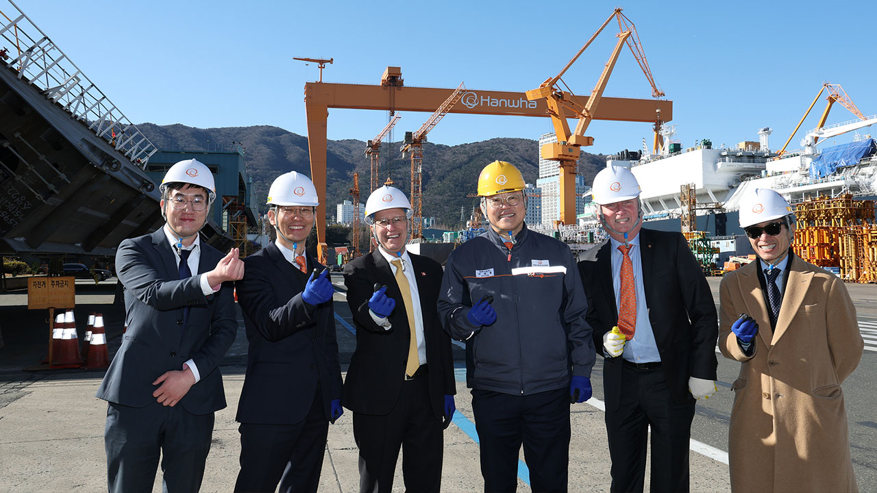 한화오션이 최대 60조 원 규모의 캐나다 초계 잠수함 사업 수주에 총력을 기울이는 가운데 캐나다 최대 주인 온타리오주 경제개발부 장관이 거제사업장을 찾았습니다.