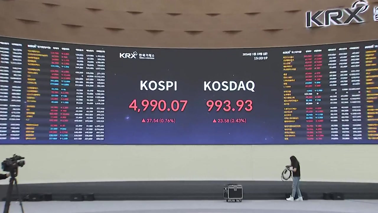 조금 전 4,990으로 마감하며 종가 기준 최고치를 기록했지만 5천 선은 지키지 못했습니다.