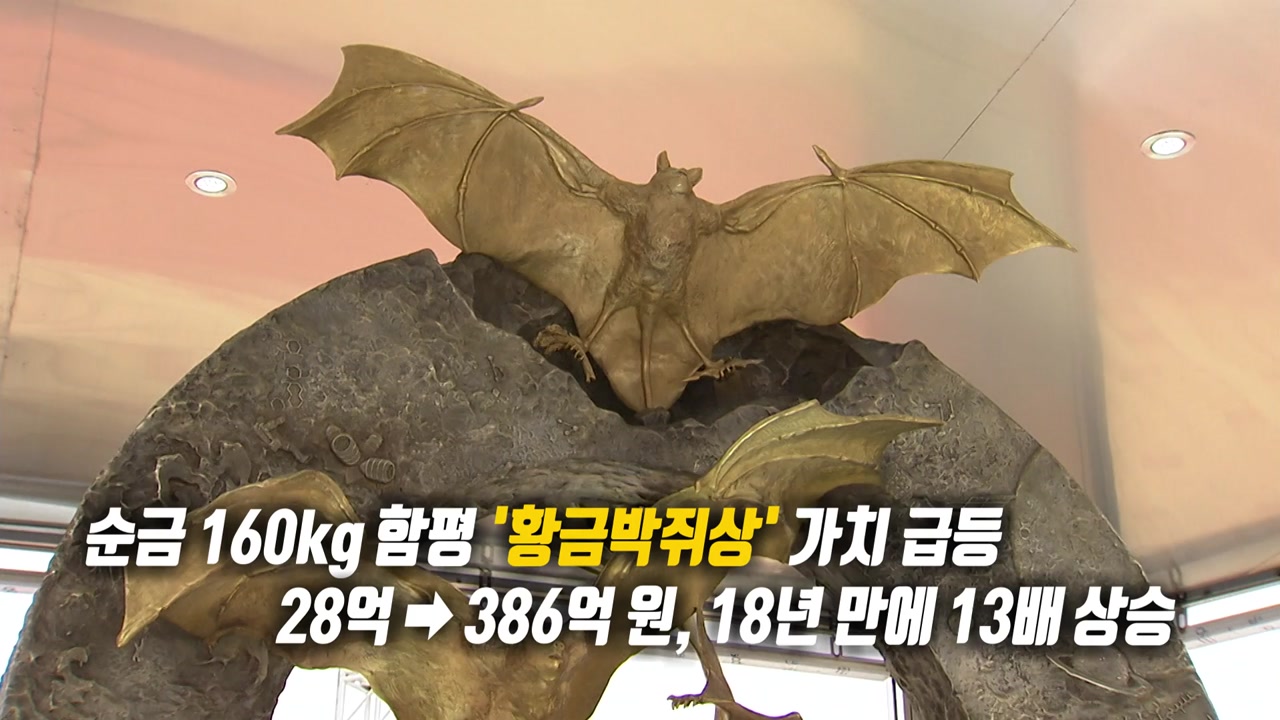 먼저 순금 160kg으로 만든 전남 함평군의 황금박쥐상, 요즘 유명세를 타고 있죠.