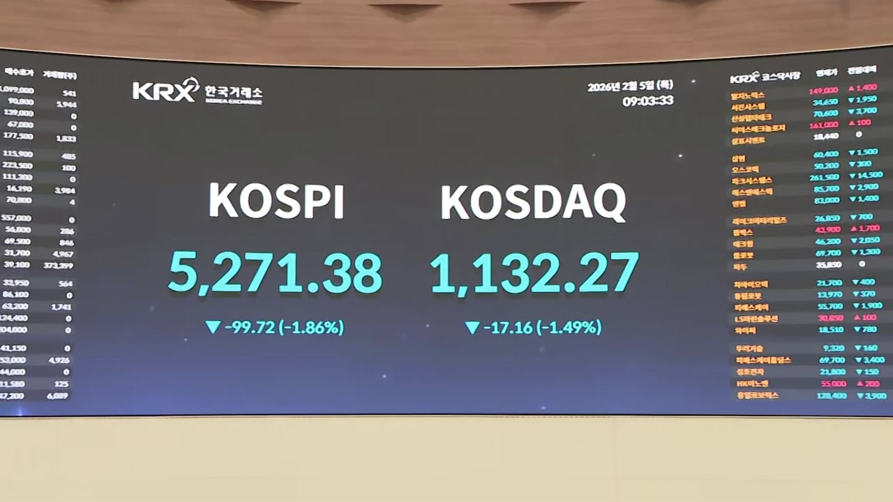 5,300 넘어 최고치를 경신했던 코스피가 오늘은 2% 하락 출발해 5,200선에 내려왔습니다.