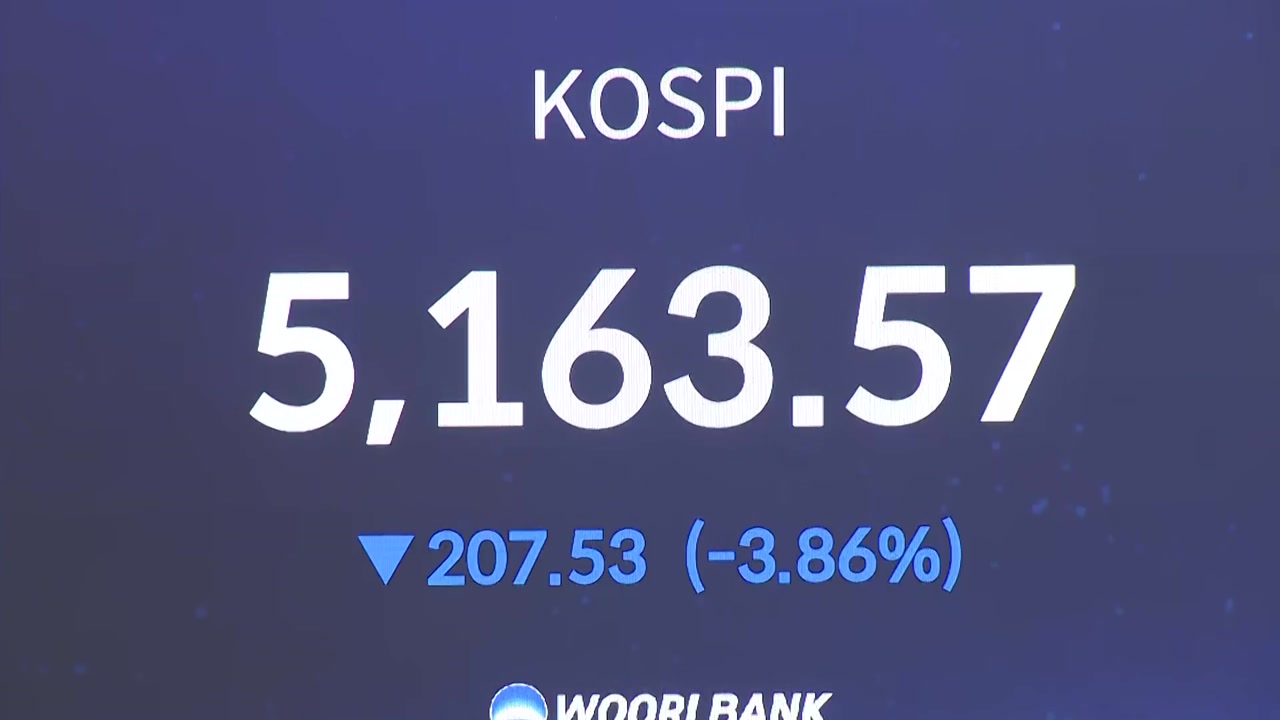 코스피, 4% 가까이 급락…5,163.57 거래 마감