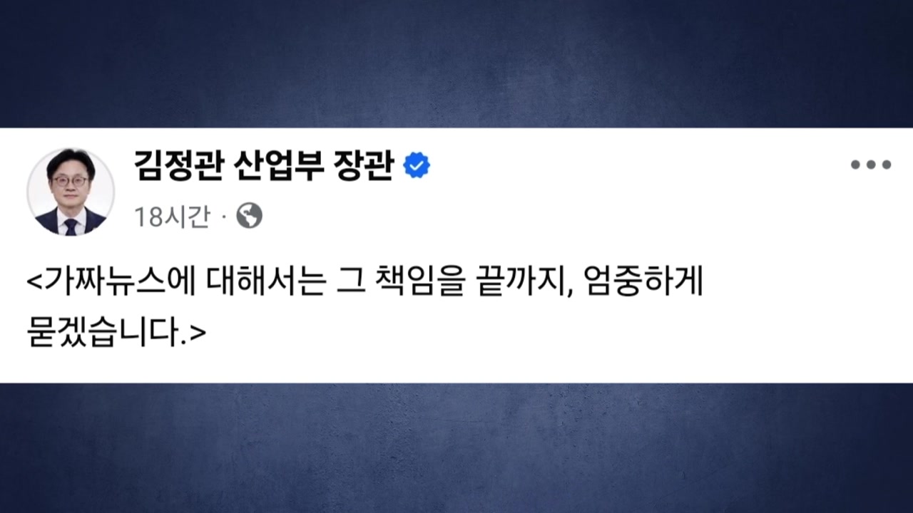 김 장관은 오늘 자신의 SNS에 대한상의가 공신력 없고 사실 확인조차 이뤄지지 않은 정보를 유통함으로써 국민과 시장, 정책 전반에 심각한 혼선을 초래했다고 지적하고 단호한 조치를 취하겠다고 말했습니다.