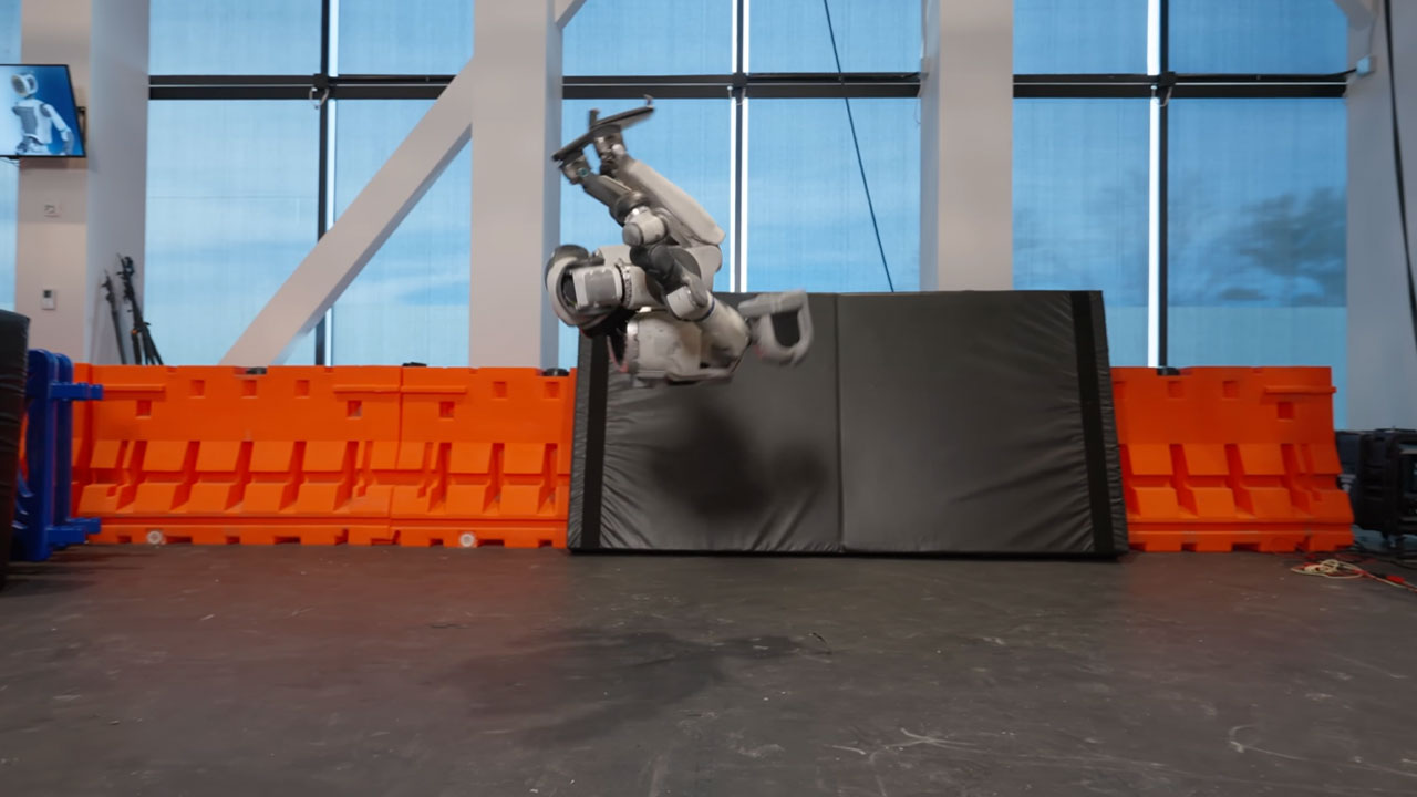 현대차그룹 로봇전문 계열사 보스턴다이나믹스가 휴머노이드 로봇 아틀라스가 연속적으로 옆돌기와 백 텀블링을 하는 시연 영상을 공개했습니다.