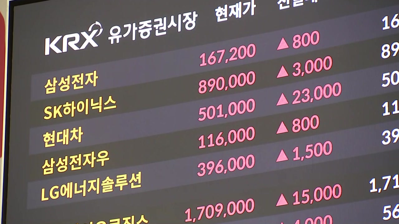 전날 5% 안팎 급등한 삼성전자와 SK하이닉스는 보합세를 보이면서 각각 16만7천 원, 88만 원대를 기록하고 있습니다.