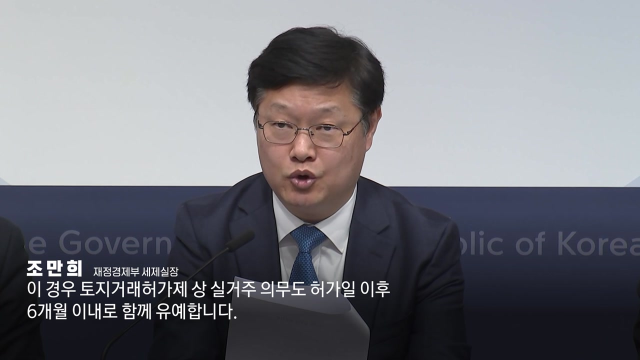 이 경우 토지거래허가제 상 실거주 의무도 허가일 이후 6개월 이내로 함께 유예합니다.