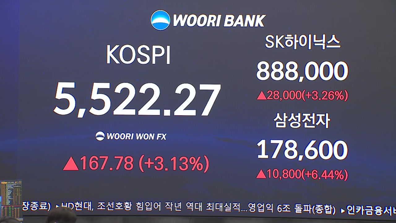 코스피가 5,522로 마감하며 종가 기준 사상 최고치를 다시 썼습니다.