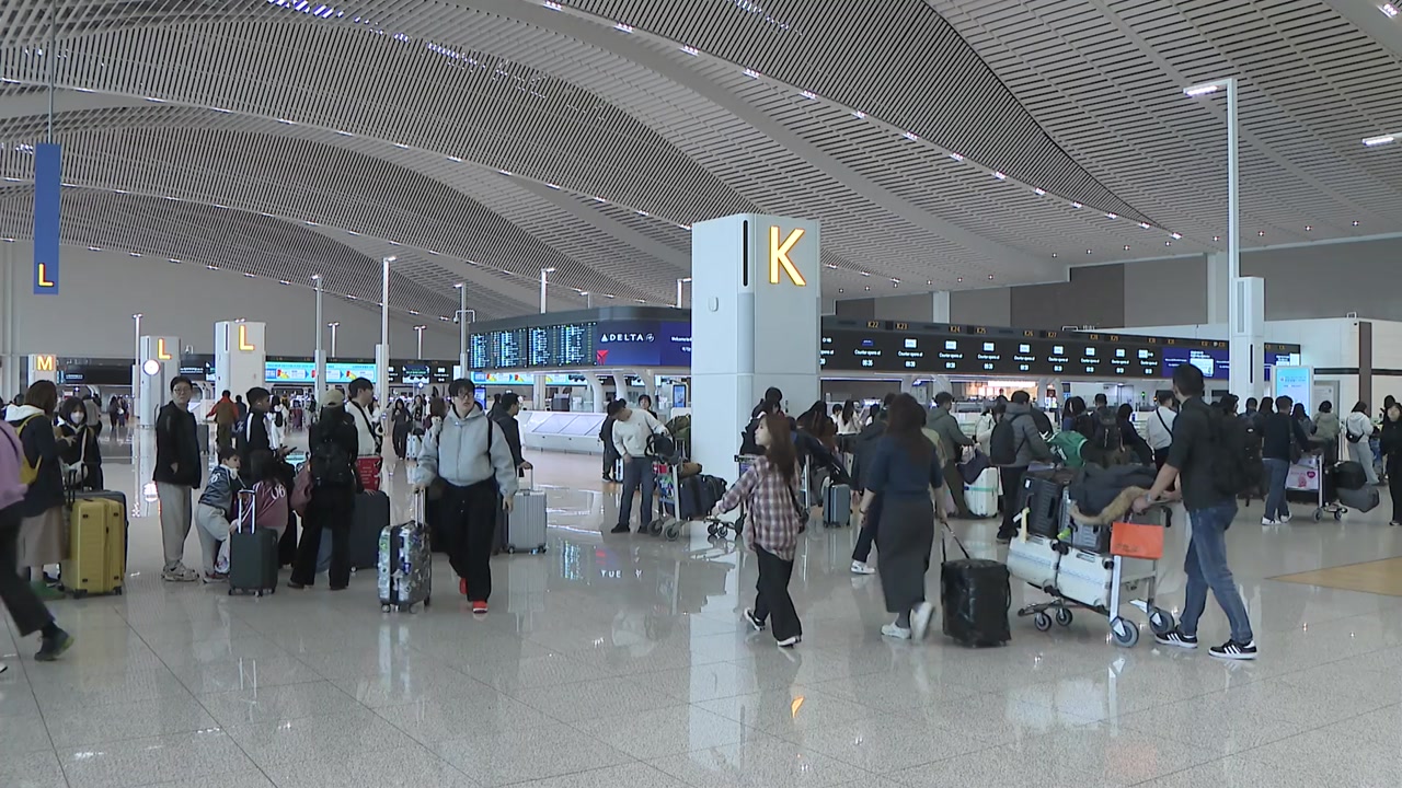 출국장에는 탑승 수속을 기다리는 여행객들로 긴 줄이 이어집니다.