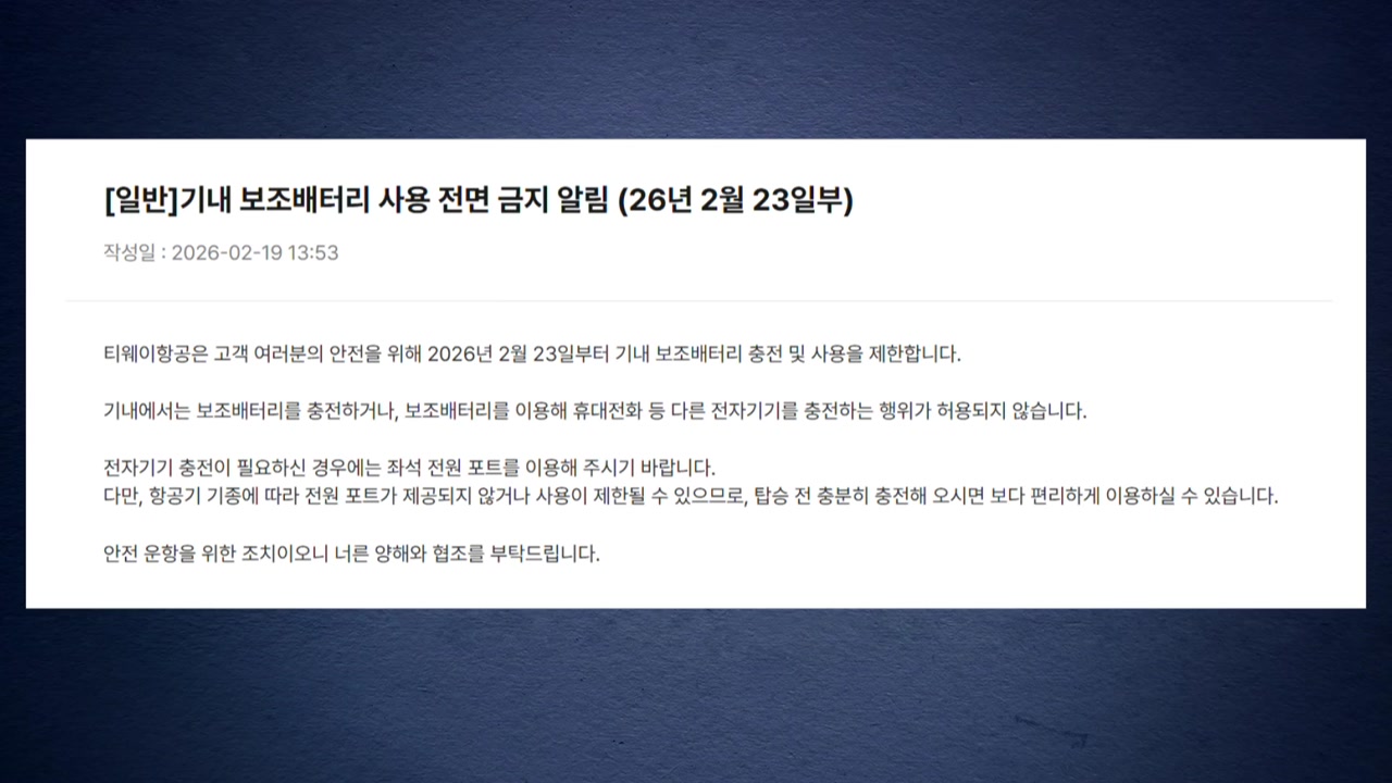 티웨이항공은 오는 23일부터 기내에서 보조배터리를 충전하거나 보조배터리로 휴대전화 등 다른 전자기기를 충전하는 행위를 금지한다고 공지했습니다.