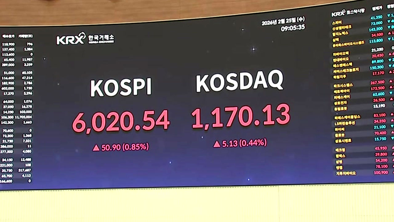 네, 코스피는 오늘 정규 거래를 시작하자마자 역대 처음으로 6천 선을 돌파했습니다.
