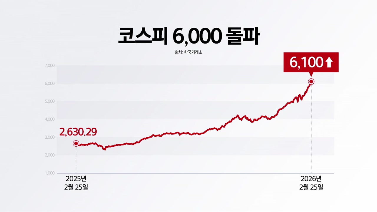 그렇습니다. 올해 한 해만 놓고 보면, 그러니까 지금이 2월 25일이잖아요. 1월 1일부터 시작했을 때 우리나라 코스피 상승률이 전 세계 1위입니다. G20 대상으로. 오늘도 올랐서니까 아마 40%. 시장이 연초에 40% 올랐으니까 종목에는 60%, 70% 간 종목들도 꽤 많다고 볼 수 있고요. 2위가 우리는 좀 아쉬워하지만 바로 우리의 코스닥입니다. 코스닥도 25% 올라서 2위를 차지했고 3위가 브라질. 반도체로 같이 올라갔다고 하면 대만도 올랐어야 하는데 대만의 지수가 4위를 기록했고 상승률로는 16~17%가 되지 않습니다. 그러니까 지금 코스피, 코스닥이 모두 압도적인 1위고 작년 4월 9일자에 2200이었거든요. 그러니까 작년 4월 9일 대비 1년도 지나지 않았는데 2200선, 2300선이었던 코스피가 6100을 왔으니까 지금 2배 넘게 폭등한 것 아니겠습니까? 그러니까 개별 종목 중에서는 3배, 4배, 8배 같은 종목들이 이렇게 많이 나왔던 것이고요. 보통 개인투자자들이 주식을 통해서 돈을 벌려면 짧은 기간 일방향으로 상승하는 시점에서 사야 그래도 돈을 챙길 수 있습니다. 오르더라도 박스권이라든가 등락을 거듭하면서 올라가면 개인들은 백전백패인데 이런 식으로 짧은 기간에 일방향으로 올라가니까 모처럼 개인 투자자들도 웃을 수 있는 그런 장세가 지속되고 있습니다.