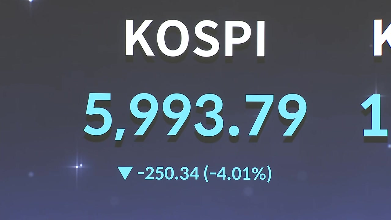 이란사태 이후 처음 열린 우리 증시에서 코스피가 3% 넘게 급락해 한때 6,000선 아래로 밀리며 불안한 모습을 보이고 있습니다.