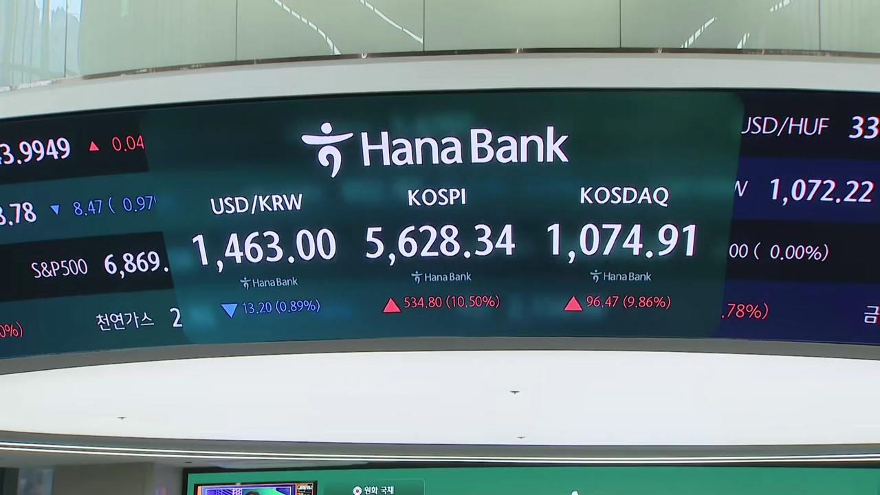 코스피는 3.1% 오른 5,250으로 출발해 5,700선까지 코스닥은 4.6% 오른 1,023으로 출발해 1,090선까지 상승했습니다.