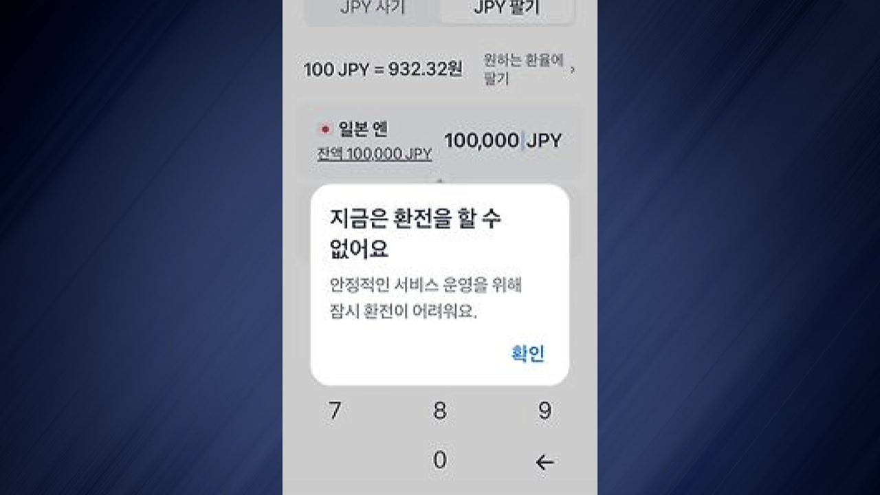 토스뱅크 측은 어제(10일) 저녁 7시 29분부터 7분 동안 기존 930원대 수준을 유지하던 엔화 환율이 절반 수준인 472원대로 적용되는 오류가 발생했다고 밝혔습니다.